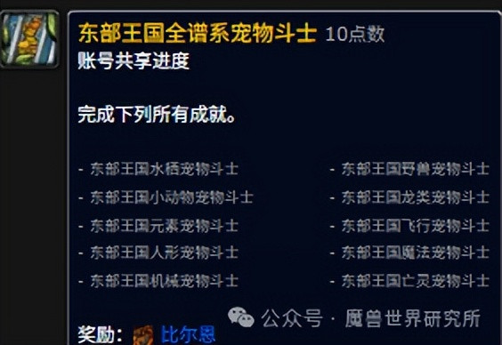 这是一项综合成就,需要同时完成东部王国和卡利姆多两大区域的对应成就。完成后,可获得一款独特的宠物指令玩具。